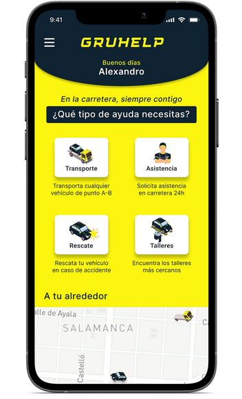Gruhelp es una aplicación que conecta a usuarios con conductores de grúas de forma rápida, intuitiva y sostenible gracias a la geolocalización